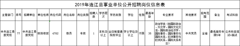 (招考单位、岗位、人数及具体要求详见《2019年连江县事业单位公开招聘岗位信息表》)