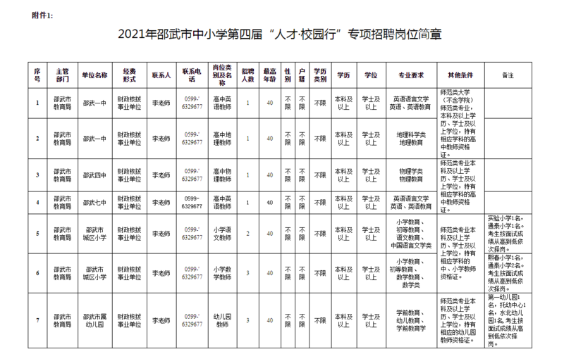 邵武市教育局人事股:0599-6329677,599-6322703。