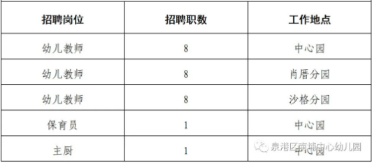 本次计划招聘26人,详见《2021年泉港区南埔中心幼儿园公开招聘编外合同教师、主厨、保育员岗位信息表》。